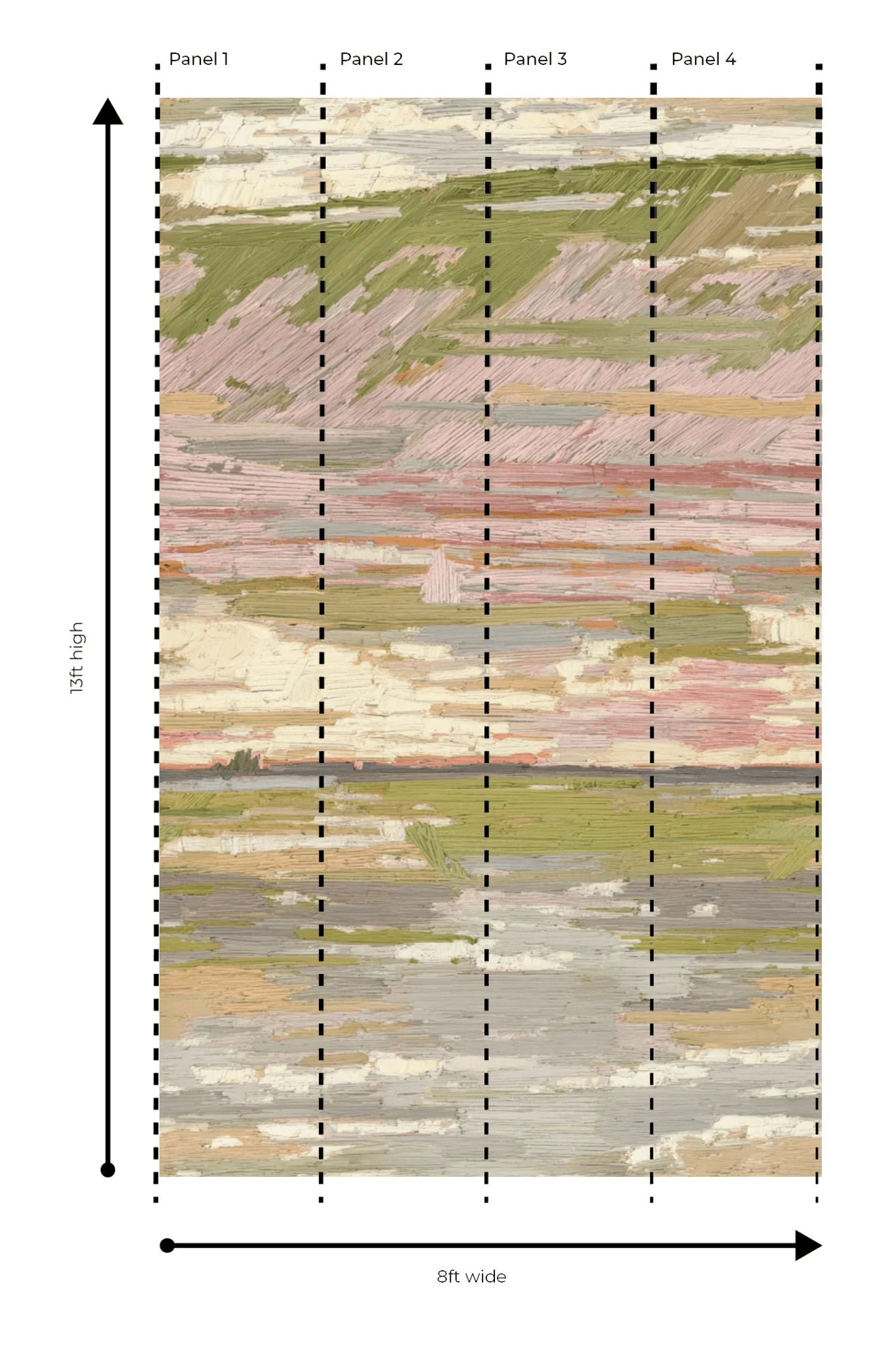 Murals are sold in a four-roll minimum to ensure the complete composition. If your wall requires additional coverage, single rolls may be added to your order. Additional rolls begin again at Panel A, as the design repeats seamlessly.