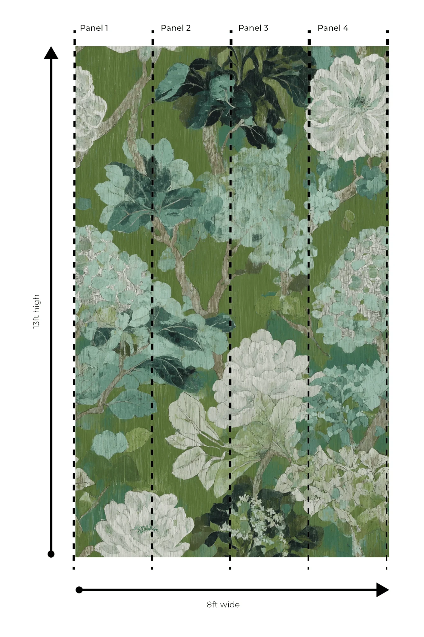 Murals are sold in a four-roll minimum to ensure the complete composition. If your wall requires additional coverage, single rolls may be added to your order. Additional rolls begin again at Panel A, as the design repeats seamlessly.