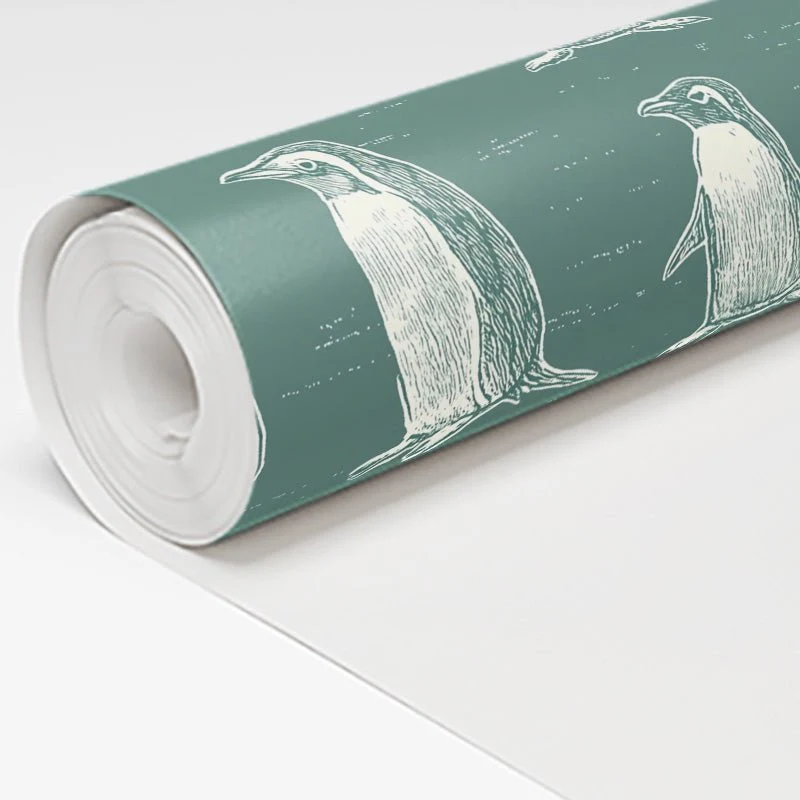 Polly Penguins wallpaper brings a whimsical charm to your space with hand-drawn penguins set against a soothing teal backdrop. This playful design adds a fun yet elegant touch, perfect for creating a cozy and unique atmosphere in any room.